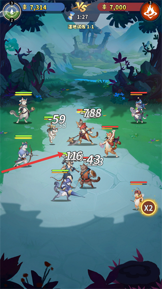 3、喵族角色會對敵方造成傷害,通過不斷戰斗提升角色戰力,解鎖更多戰役關卡。