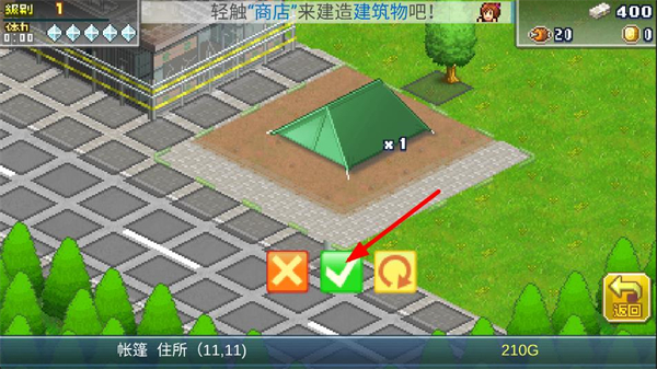 3、放置好帳篷設施后,點擊確認按鈕完成建造,將設施固定在城鎮區域,完善城鎮的基礎居住設施。