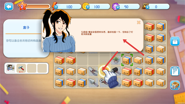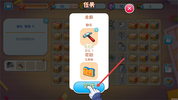 3、完成任務如創建榔頭等,可獲得獎勵如工具箱,積累獎勵提升游戲進度,解鎖新的工具和功能。
