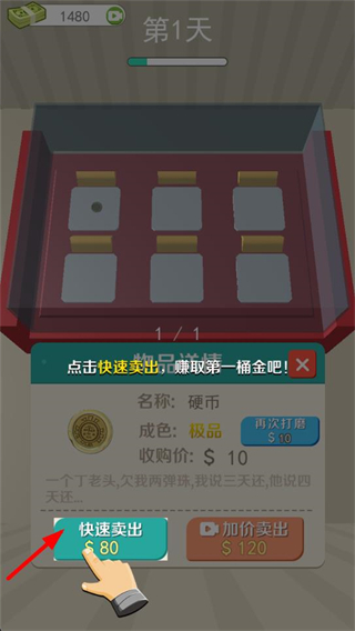 1、打磨后的物品可選擇快速賣出,點擊快速賣出按鈕,即可獲得對應金額的收益,積累當鋪的經營資金。