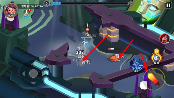 1、操控角色在場景里移動,使用背刺等技能攻擊怪物,同時可點擊投彈戰技等按鈕釋放對應能力,推進戰斗進程。