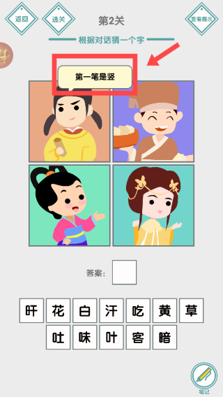 2、字庫選擇字詞:根據觀察到的信息,在下方的字庫中選擇出正確的組詞字詞,嘗試猜出對應的漢字。
