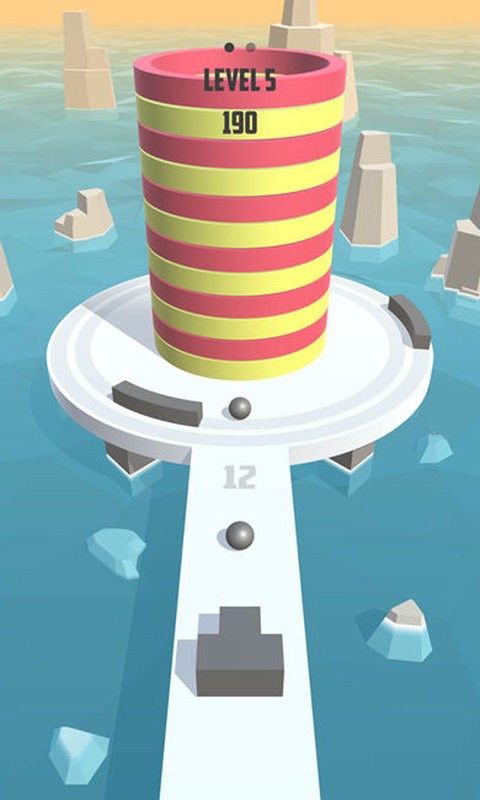 2、點擊射擊闖關:點擊屏幕射擊小球,沖擊前方的摩天大樓和障礙物,根據節奏連擊,完成闖關。