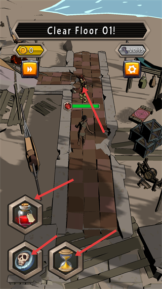 4、進入地牢,需要對戰敵人,操控角色移動,還能使用藥水、骷髏頭等道具,助力完成清理敵人任務。