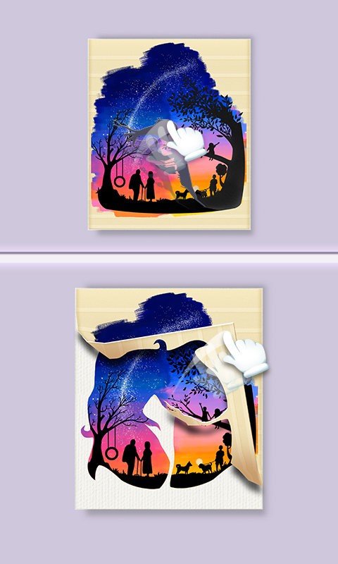 1、藝術效果驚艷:支持涂色、撒金粉、貼貼紙等操作,撕下遮蓋后呈現精美剪影畫,輕松打造華麗數字藝術作品。