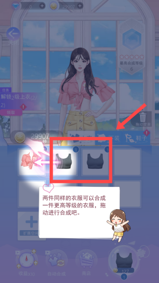1、將相同的兩件衣服合成,解鎖更高級服飾。