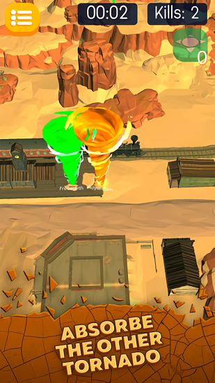 1、觸屏操控移動:通過觸屏滑動操作,輕松控制龍卷風的移動方向,靈活穿梭在游戲場景中,尋找可吞噬的目標。