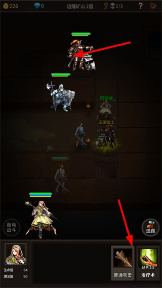 4、面對多個敵人時,可選擇普通攻擊或治療術等操作,合理運用技能,戰勝敵人推進探索。