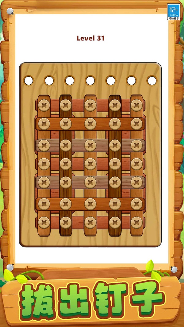 3、極簡操作方式:只需輕點釘子并合理擺放,無需復雜操作,輕松上手感受益智樂趣。