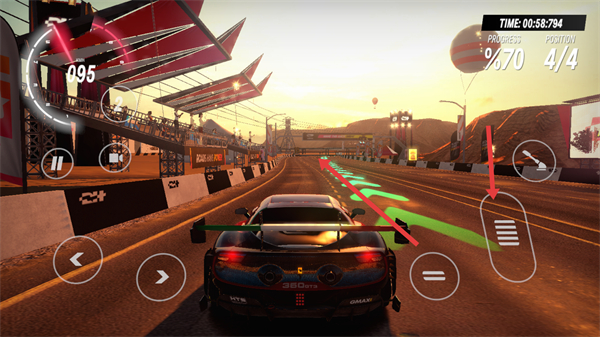 3、接近終點時,沿著賽道指引,精準操控賽車,全力沖刺,爭取更快到達終點,獲得好成績。