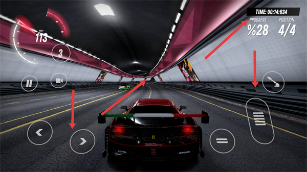 2、在不同賽道場景,比如在隧道,繼續操控賽車,保持速度,超越對手,提升比賽排名。