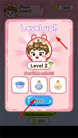 4、直播積累熱度后會升級,界面顯示Level up解鎖新物品,點擊Next按鈕,進入下一級的游戲流程繼續體驗。