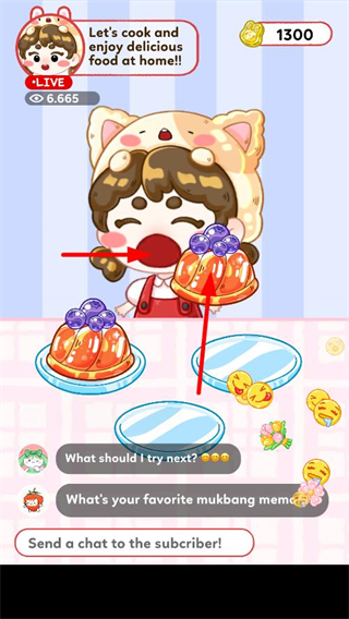 3、完成果凍制作后,角色會品嘗果凍,同時界面會出現觀眾的互動留言,可查看相關反饋,積累直播熱度。