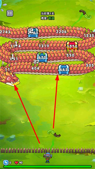 2、操控角色戰斗:玩家控制角色左右靈活移動,自動射擊巨龍,每成功擊破巨龍身上寶箱,便迎來關鍵選擇時刻,從眾多強化選項中選取最契合當下戰斗的一項。
