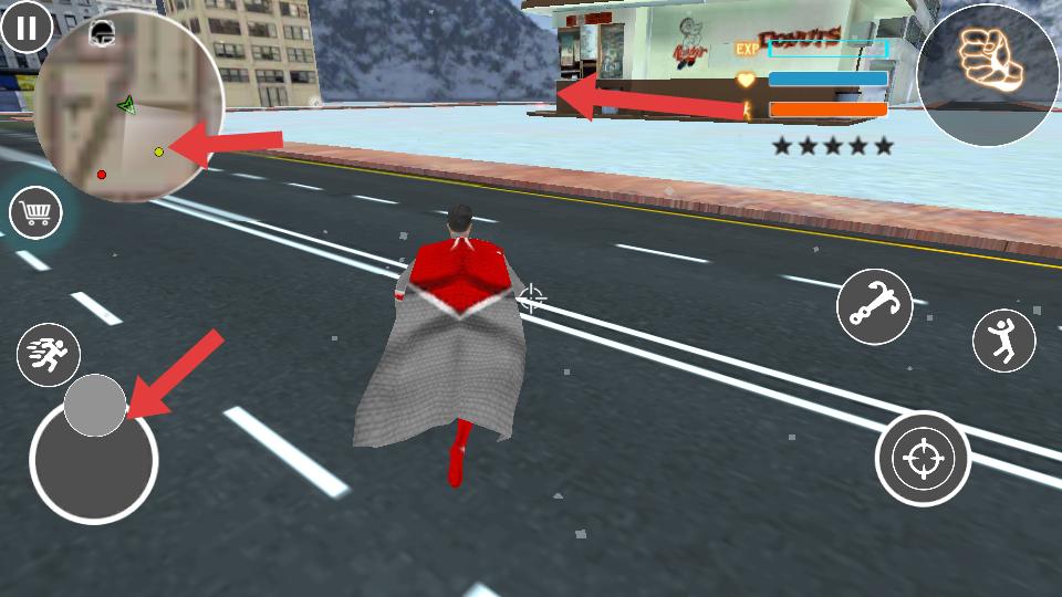 4、進入游戲場景,操控角色在城市里移動,利用虛擬搖桿控制方向,根據小地圖前往目標地點,執行任務。