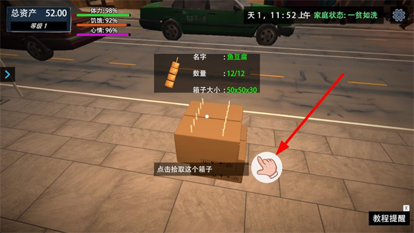 4、拾取魚豆腐箱子,接收采購的食材,保障燒烤店的食材供應,為后續的燒烤經營和銷售做好準備。