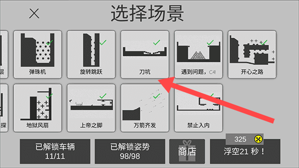 1、選擇游戲關卡:打開游戲點擊開始,利用無限金幣購買所有關卡,自由挑選想要體驗的場景關卡。