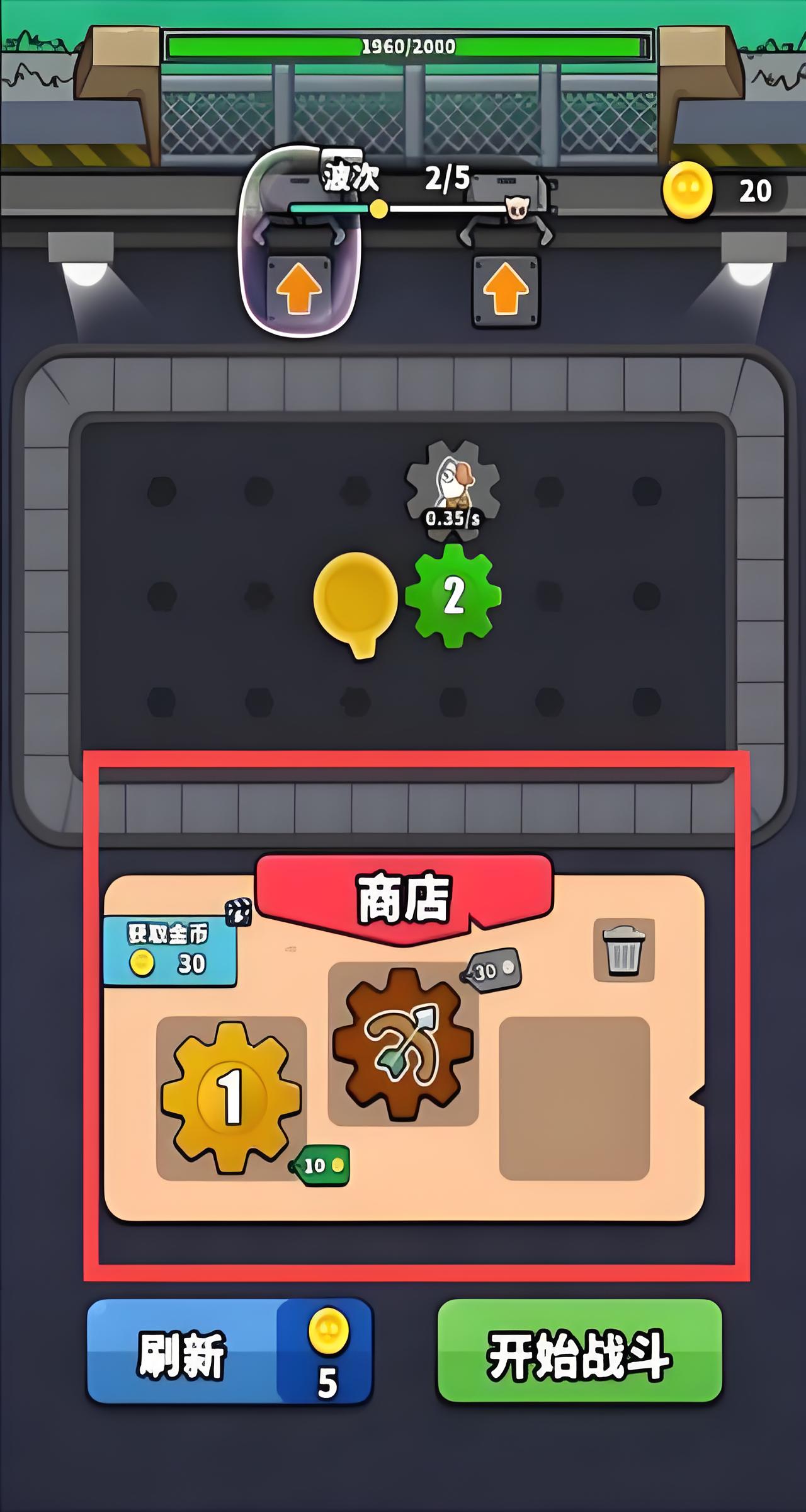 1、齒輪合成布局:拖動齒輪完成防御布局,通過合成相同等級齒輪,獲取更高級齒輪增強防御。