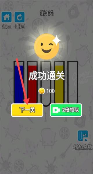 3、通關獎勵獲取:當同一顏色液體完全倒滿瓶子,成功通關,可獲得金幣獎勵,用于解鎖新皮膚。