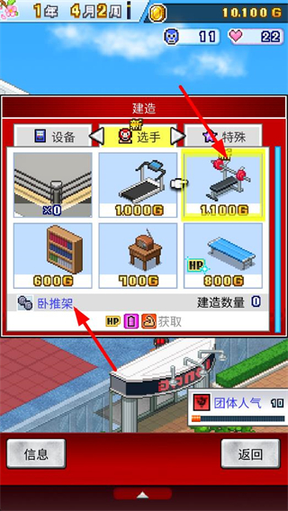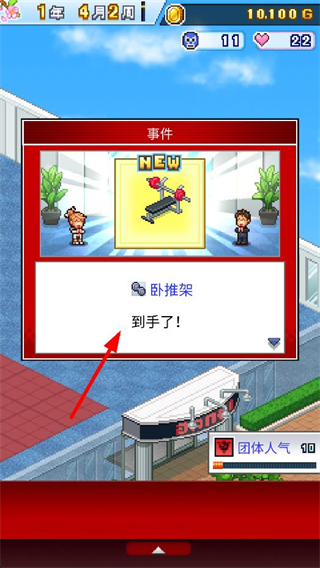 2、通過事件界面可獲得訓練器具,比如臥推架,獲取后該器具會加入可建造的設施列表,豐富訓練資源選項。