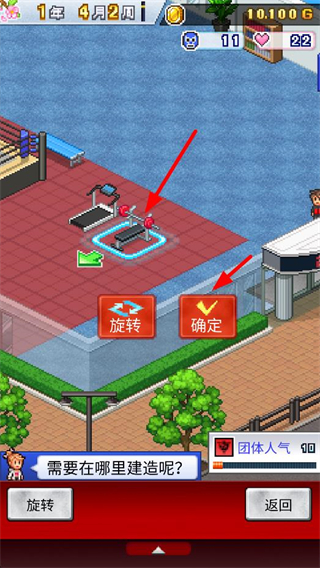 4、在場地內選定合適位置,可旋轉調整器具擺放角度,確認后點擊確定按鈕,即可完成訓練器具的建造布置。