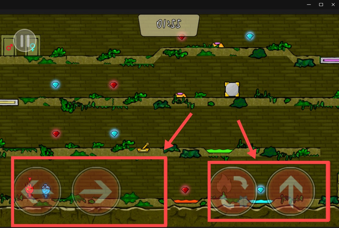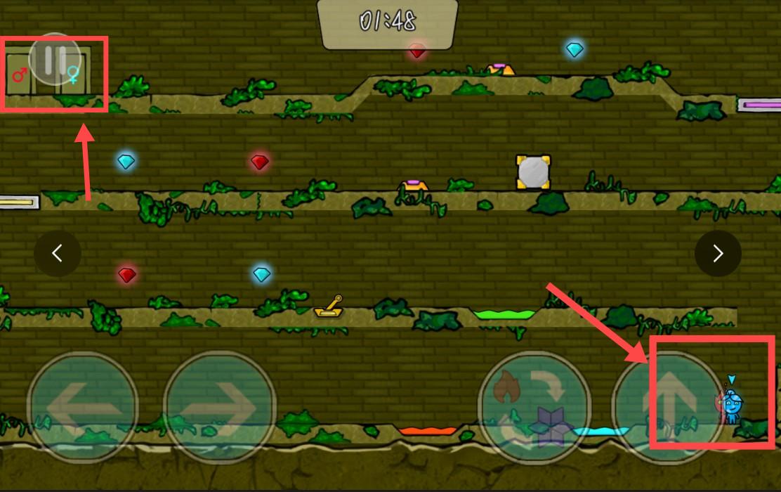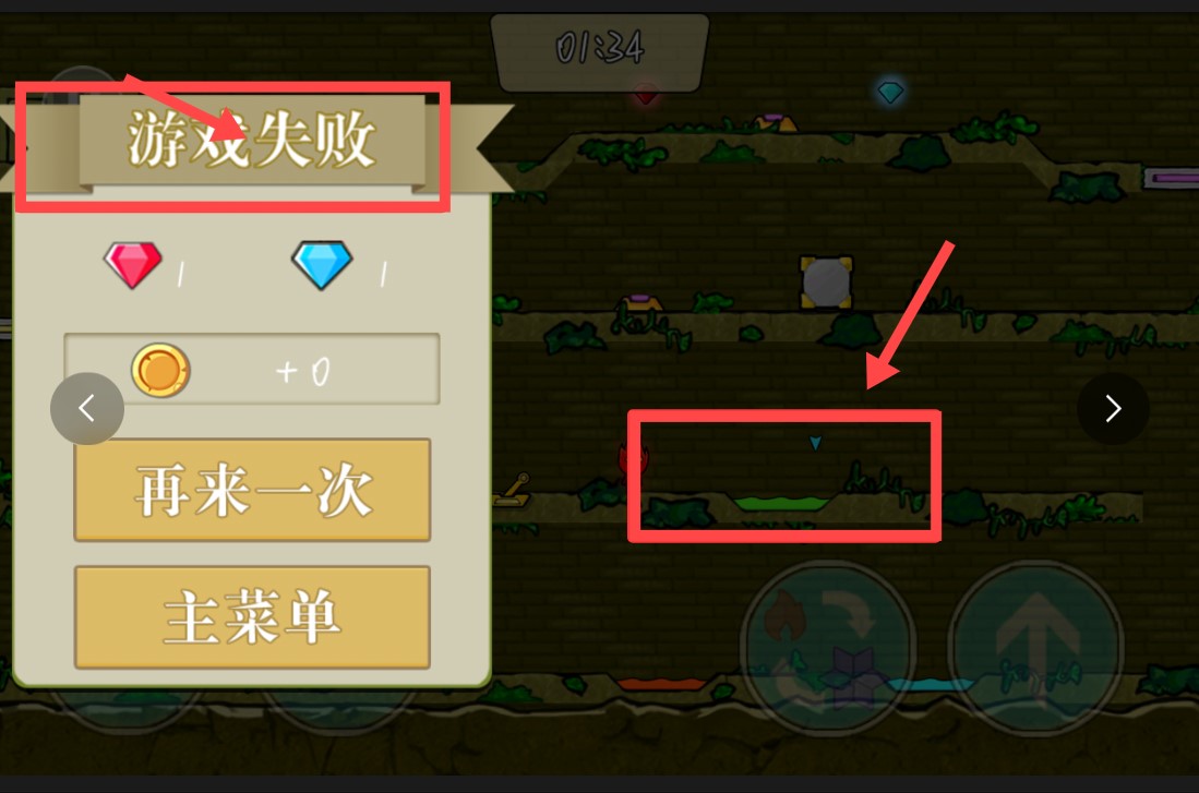 1、右邊控制冰火人的移動,左邊控制轉換與跳躍。