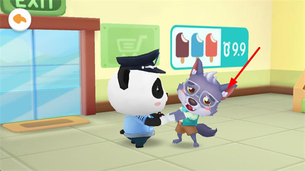 3、在室內場景找到裝扮后的目標狼,警察熊貓抓住狼,完成對應的抓捕任務環節,推進警察的任務流程。