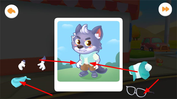2、看到目標狼的形象展示,結合周圍的服飾道具,選擇對應物品搭配到目標形象上,完成形象裝扮的匹配操作。