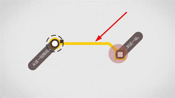 2、繼續拖動部件,讓其延伸至目標站點,完成該段線路的搭建,使線路形態貼合提示的路徑,推進關卡進度。