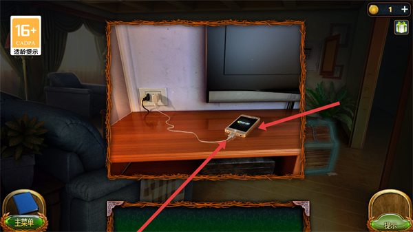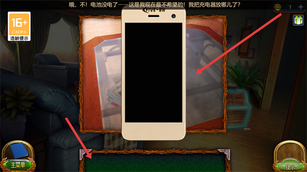 3、遇到手機沒電的情況,需尋找充電器,根據提示在場景不斷查找充電器的位置。