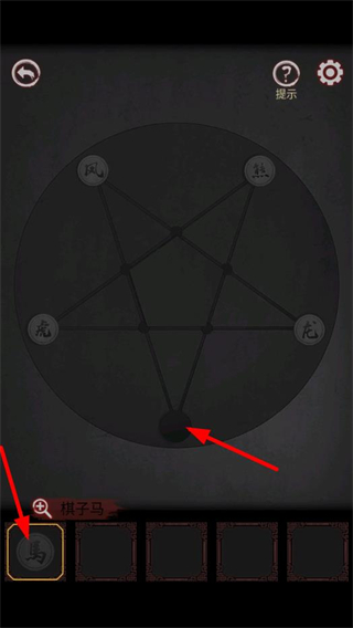 1、需移動棋子馬到對應的位置,通過調整棋子布局來解開五角星圖案的謎題。