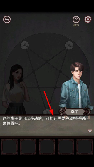 2、角色秦宇提示棋子可以移動,需將棋子移到正確位置,根據角色提示推進解謎。