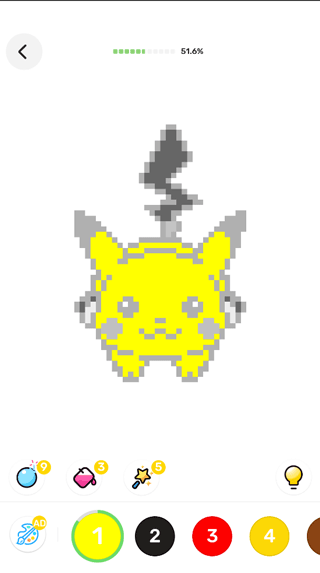 2、按照提示給皮卡丘進行涂色,每次涂完一種顏色就會自動進行下一種顏色的填充。