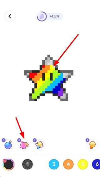 3、當多數像素塊填充完成后,圖案會更清晰呈現,剩余未填充的像素塊會更明顯,繼續選擇對應數字的顏色,完成剩余區域的填色。