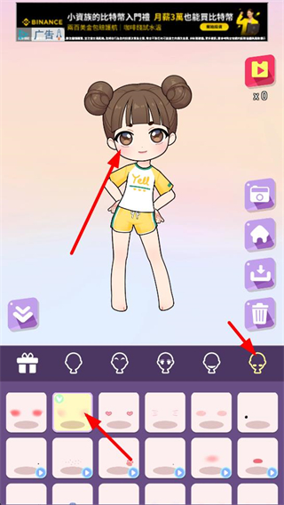 2、切換到表情裝扮選項,從下方的表情樣式里選擇合適的表情,讓角色呈現出對應的神態,豐富裝扮效果。