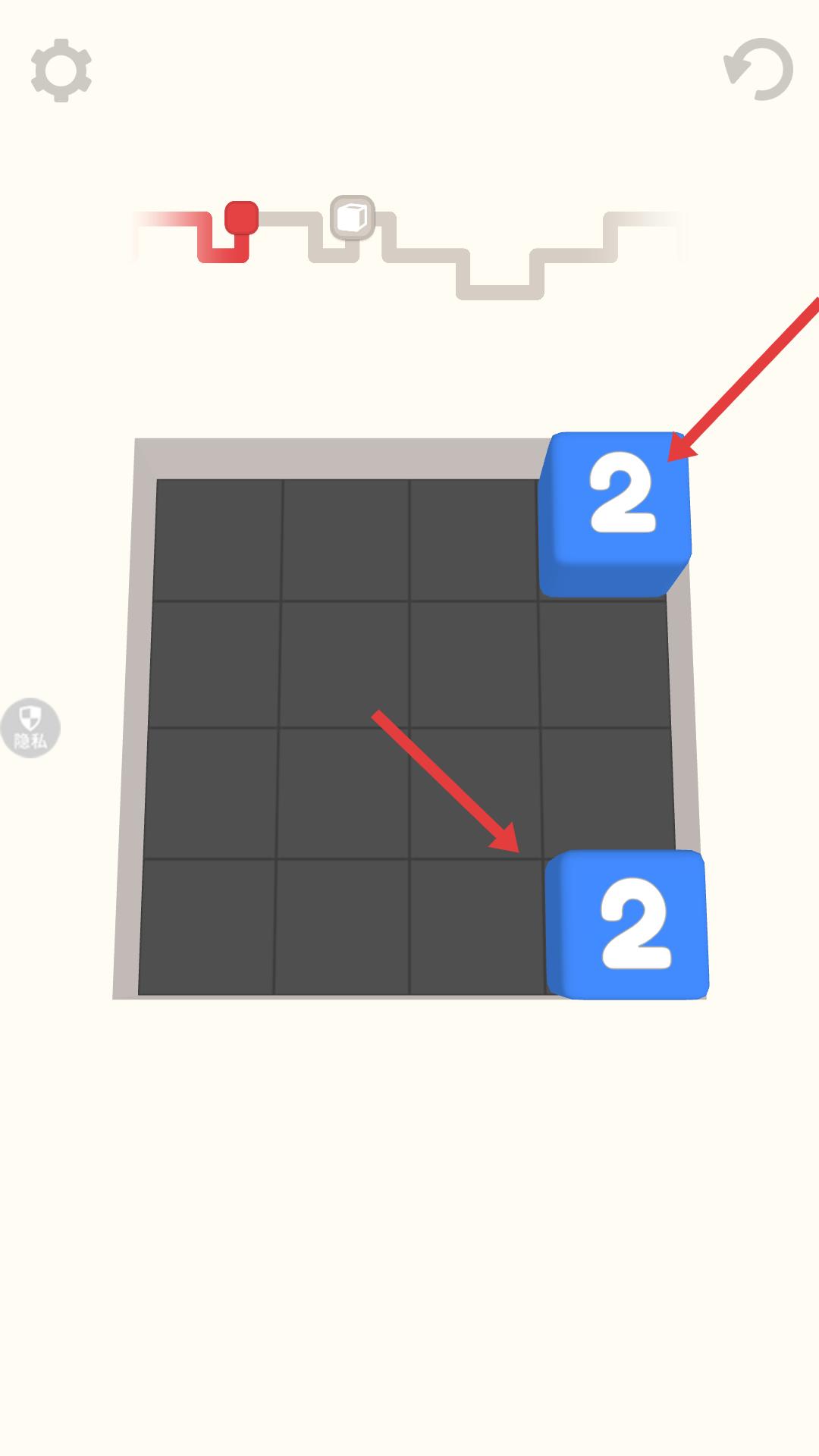 2、操控帶有數字2的藍色方塊,將它們移動到一起,使相同數字的藍色方塊完成合并,逐步推進游戲進程。