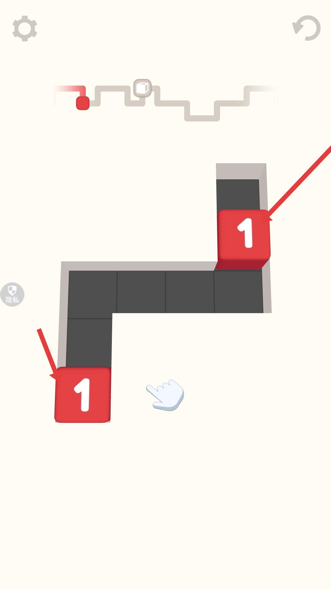1、觀察帶有數字1的紅色方塊位置,通過滑動等操作,讓兩個數字1的紅色方塊移動到合適位置,為后續方塊合并做準備。