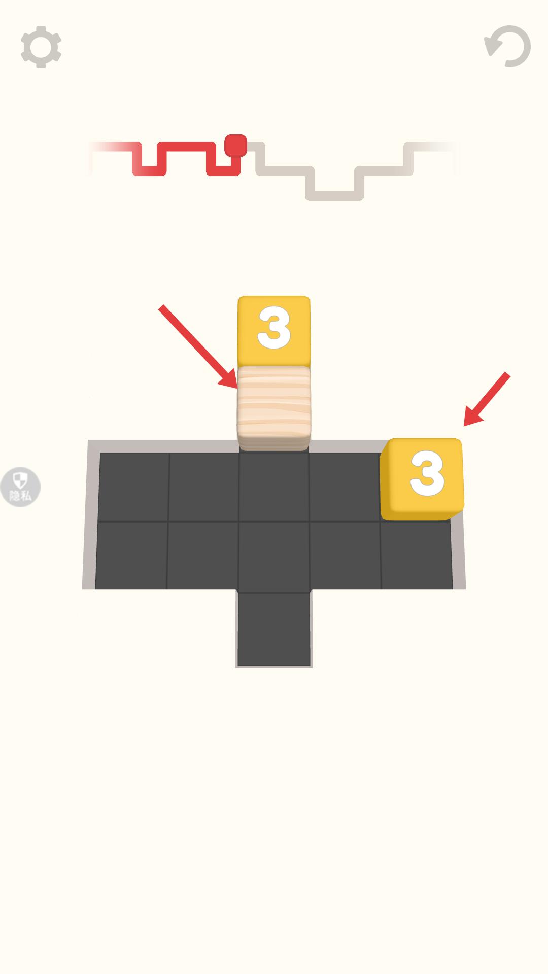 3、借助中間的木塊等輔助,把兩個數字3的方塊移動到可合并的位置,實現合并。