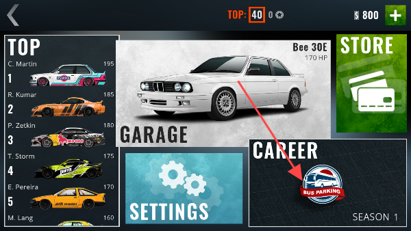 1、關卡選擇開啟:在游戲中下載安裝完成后,進入游戲點擊CAREER選項,即可挑選關卡開啟賽車挑戰之旅。