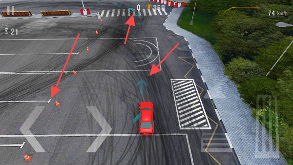 2、進入游戲后左手是控制左右的,你需要沿著箭頭駕駛,用最快的速度到達終點。