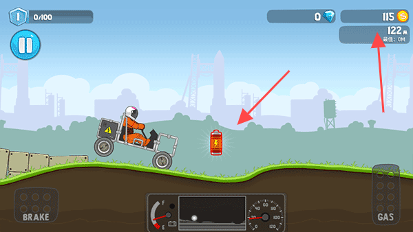 3、駕駛途中有許多能量瓶子和金幣,經過即可獲得,可以用來購買和改裝車輛零件。
