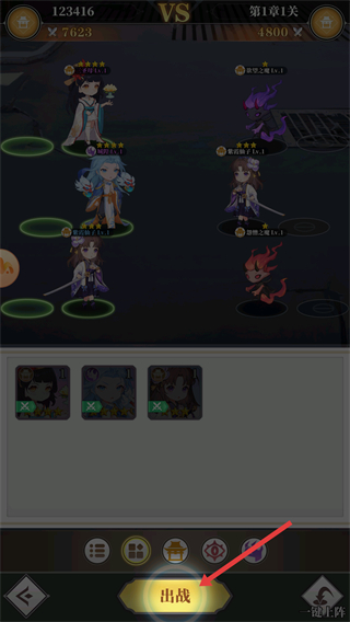 1、在戰斗準備界面布置出戰角色,調整好陣容后點擊出戰按鈕,開啟與關卡敵人的對戰。