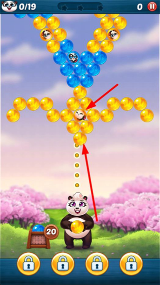 3、消除解救目標:消除全部珠子,救出被困的熊貓寶寶。