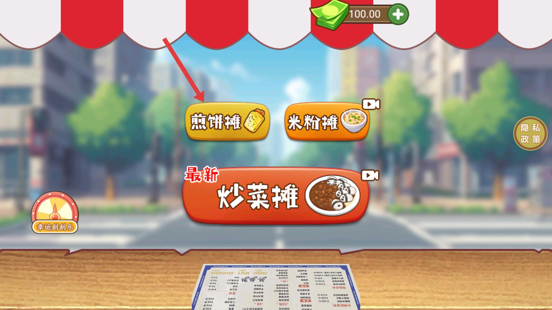 1、玩家下載游戲登入游戲頁面后,選擇【煎餅攤】,開啟煎餅制作之旅。