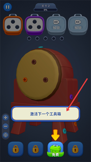 4、進入新關卡時,玩家可激活下一個工具箱,解鎖新工具,繼續對新的3D物體進行組裝挑戰。