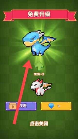 2、利用【免費升級】功能,點擊【觀看】或花費【4】鉆石,讓寵物從【MIG-3】等級提升,增強寵物實力。