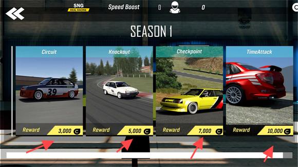 2、選擇一個章節可以挑戰不同的競速模式,每個模式給的獎勵是不一樣的。