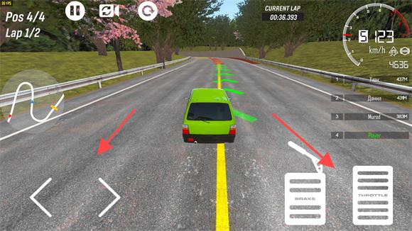 3、虛擬按鍵操控:通過屏幕虛擬按鍵操作,左側控制方向盤轉向,右側管理剎車、油門與倒車,熟練掌握駕駛技巧。