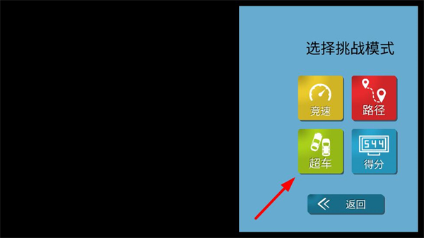 1、在挑戰模式界面,挑選超車模式開啟對應挑戰,該模式需完成特定的超車目標,選定后即可進入關卡開始游玩。