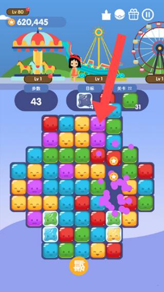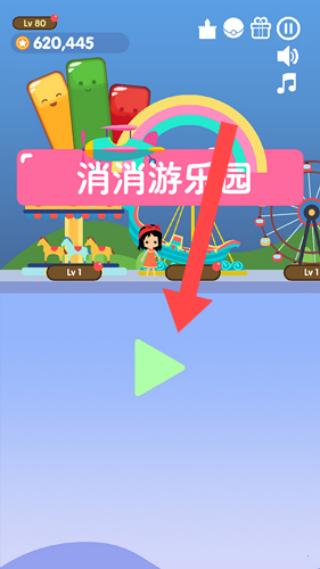 1、玩家需要點擊進入消消游樂園游戲,點擊箭頭所指方向進入游戲關卡,即可開始游玩。